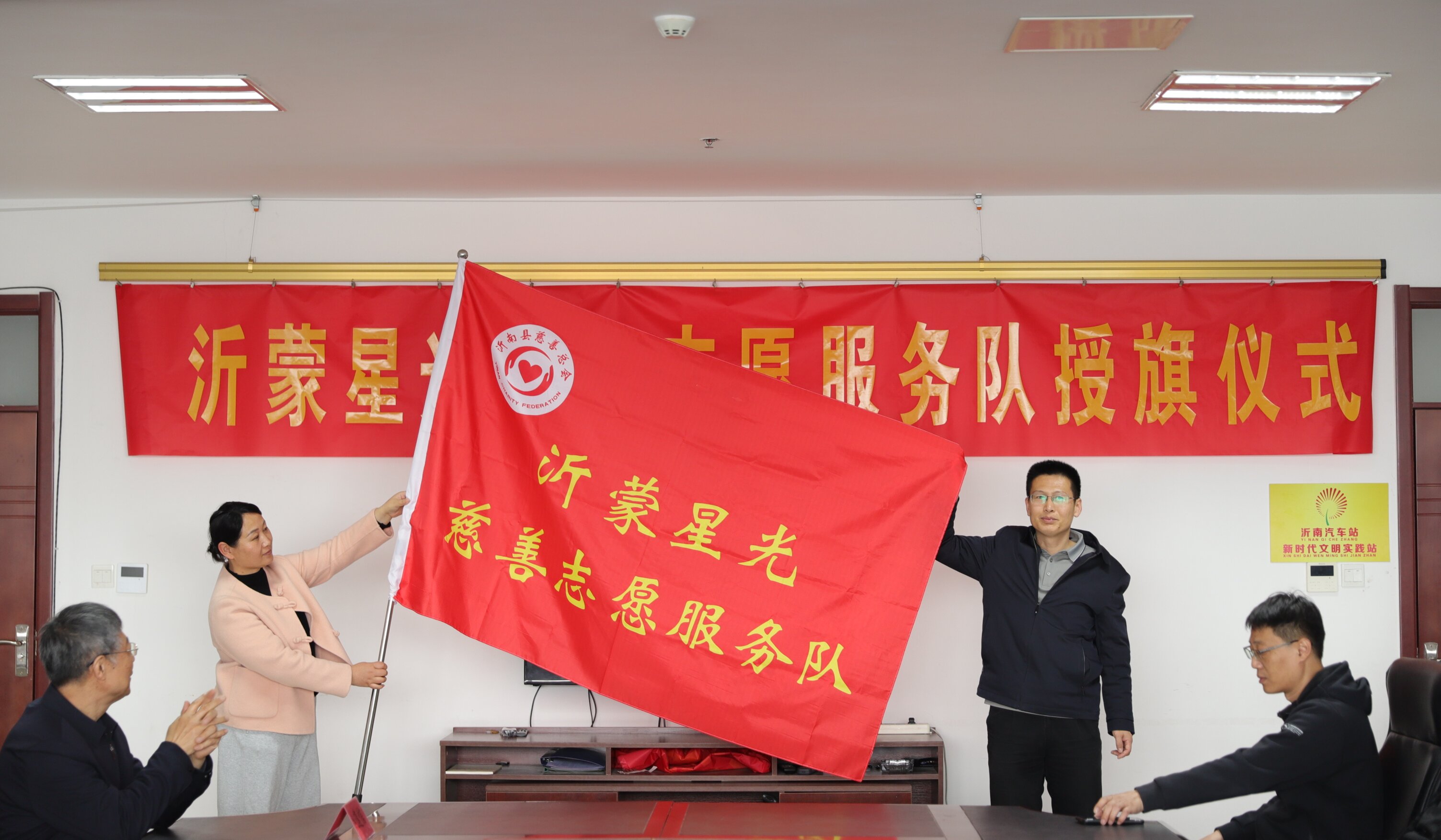 4月9日,县慈善总会携手临沂交运沂南分公司在沂南县汽车站会议室举行沂蒙星光慈善志愿服务队授旗仪式。县慈善总会常务副会长刘长安、秘书长李兴凯、监事长赵遵信,县委社会工作部副部长贺方雷,临沂交运沂南片区经理李德胜,沂蒙星光慈善志愿服务队队员代表参加仪式。县慈善总会秘书长李兴凯主持仪式。