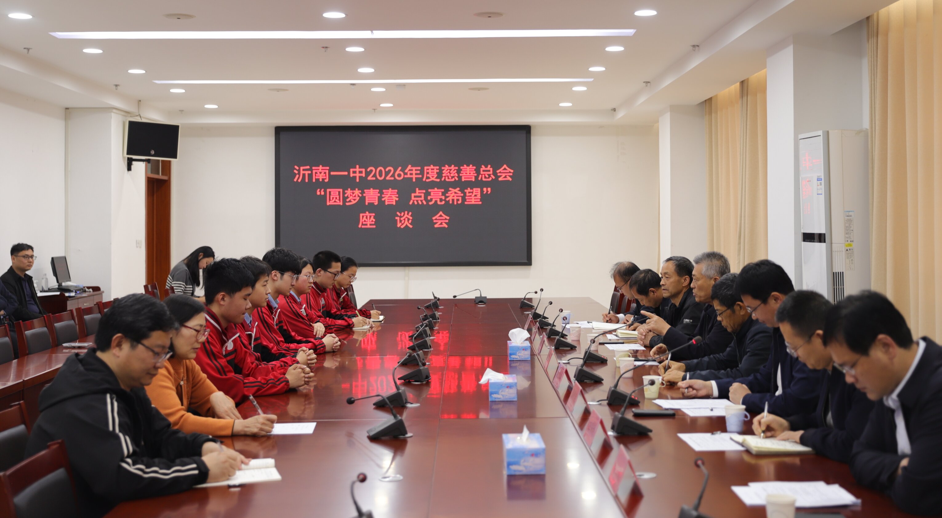 4月15日,县慈善总会在山东省沂南县第二中学会议室举行“圆梦青春 点亮希望”跟踪救助活动座谈会。县慈善总会常务副会长刘长安、副会长高善群、监事长赵遵信,沂南二中党委副书记李遵和,副校长秦丕权、孟伟、左安志、李慧慧,校务会成员、工会主席满成德,沂南二中教师代表及受救助学生代表参加会议。